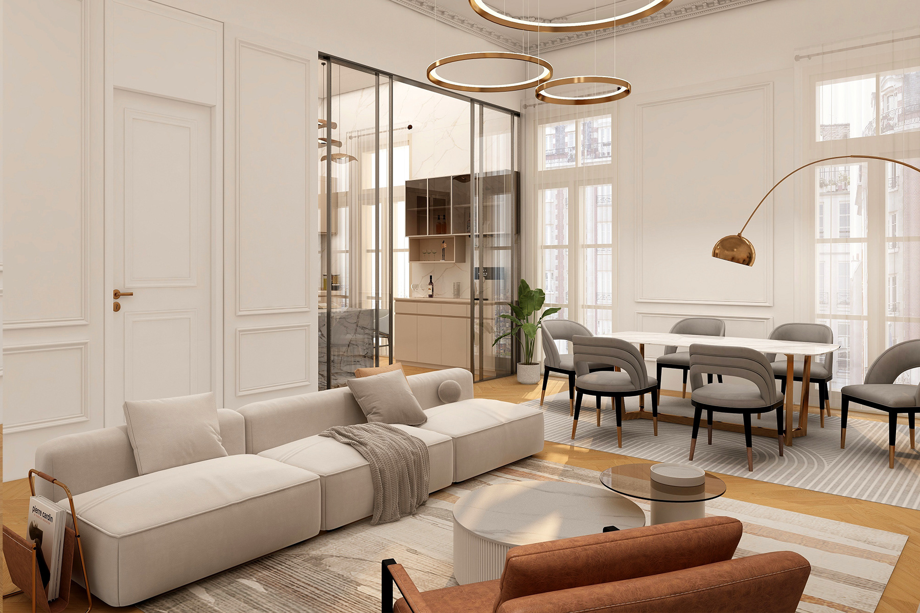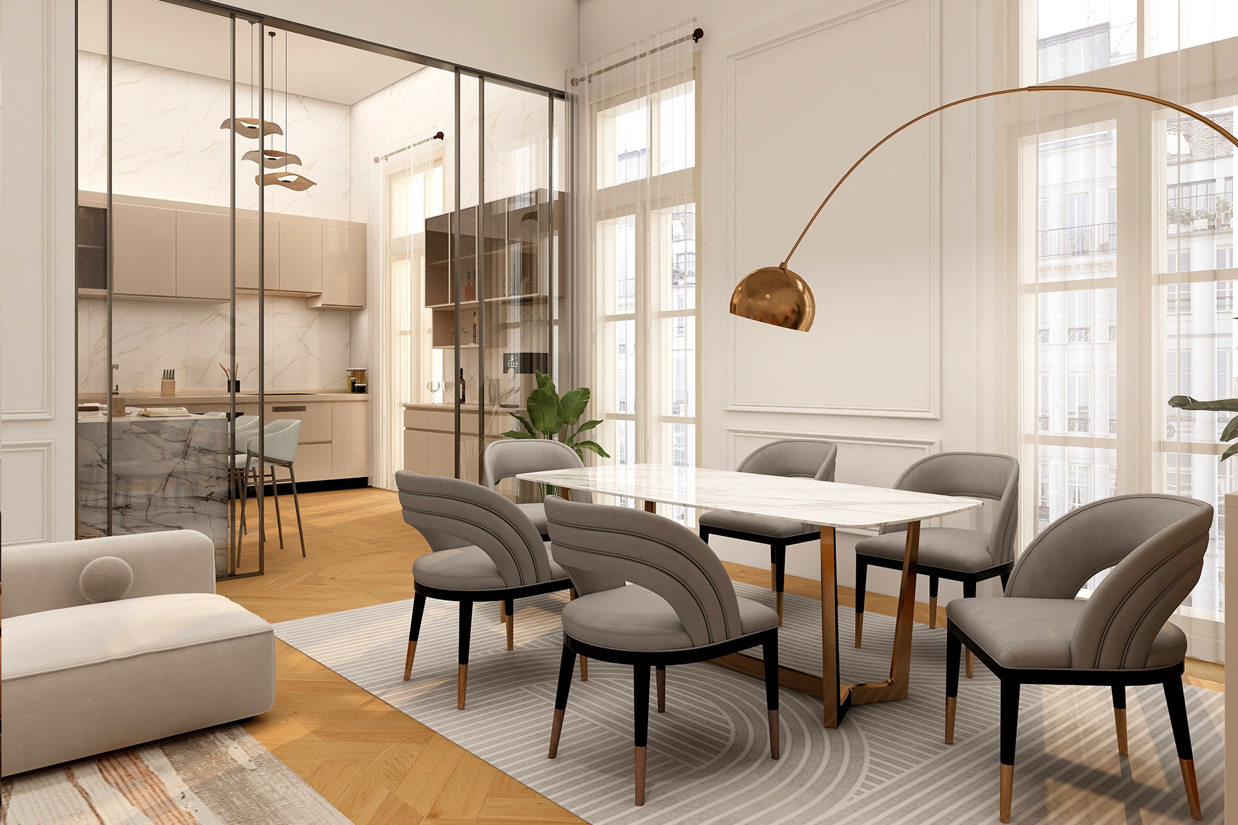 This exquisite luxury apartment in Milan epitomizes modern elegance with its sophisticated boiserie detailing. Bathed in soft beige tones, the space exudes warmth and tranquility, creating a serene retreat in the bustling city. The thoughtfully designed layout features a spacious walk-in wardrobe, providing ample storage while enhancing the overall sense of luxury. High-end finishes and contemporary furnishings complement the refined aesthetic, making this apartment a perfect blend of style and comfort. Ideal for those seeking a prestigious urban lifestyle, this residence captures the essence of Milanese sophistication.