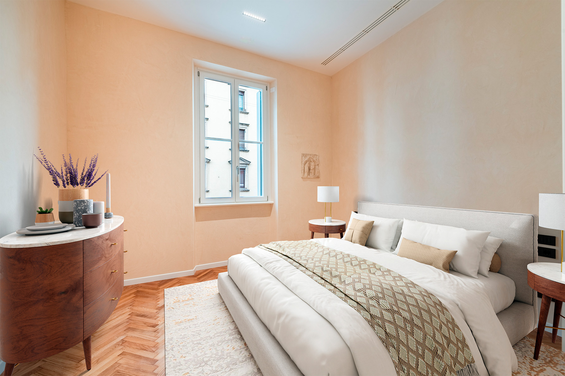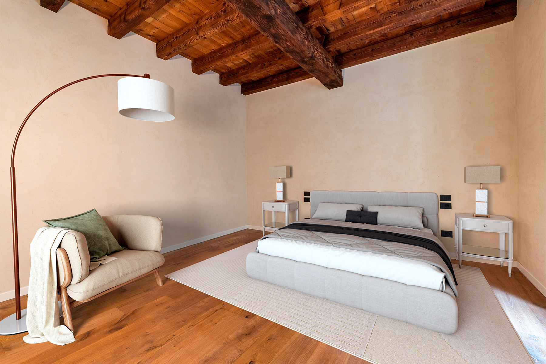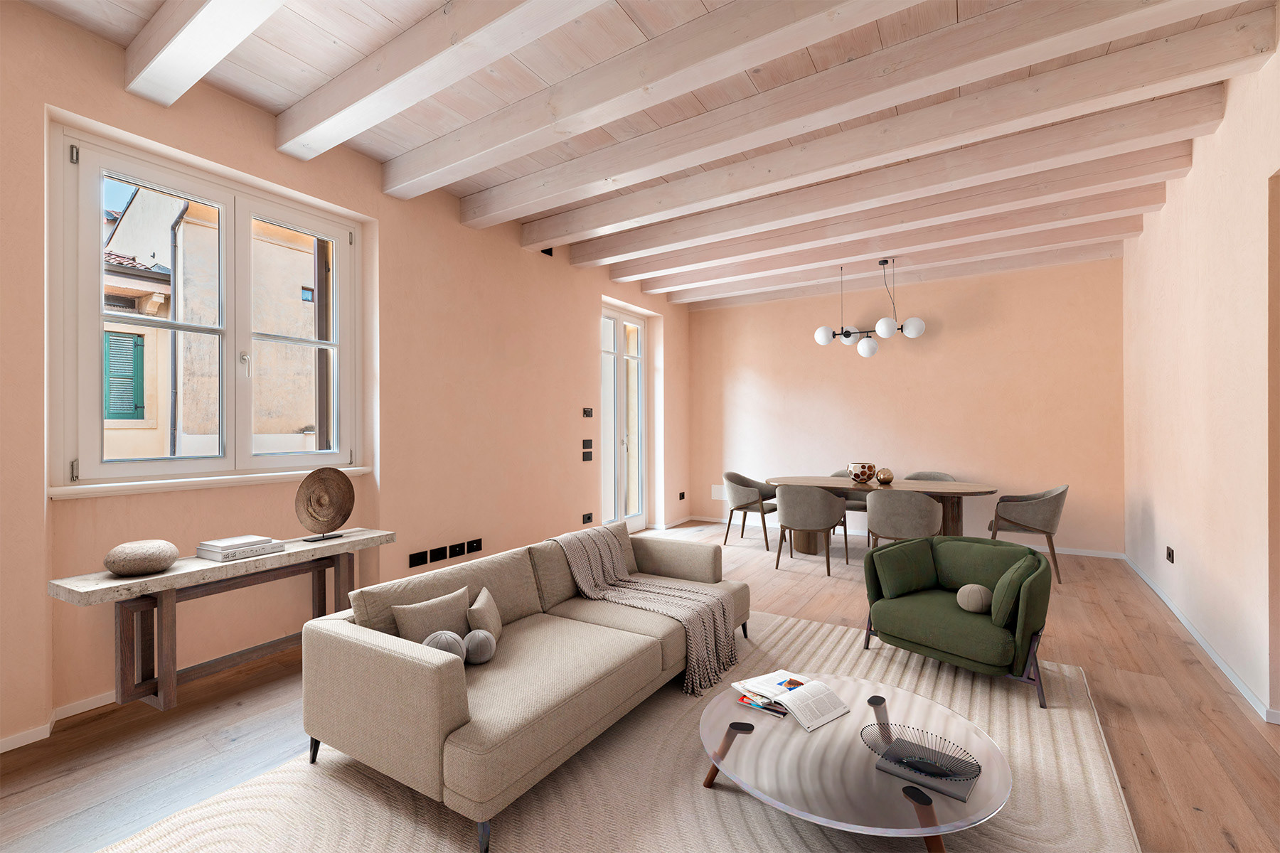 Palazzo Gaspari - A Masterpiece of Restoration and Elegance The restoration of Palazzo Gaspari, a 17th-century building in Verona, has transformed this historic landmark into a prestigious residential complex. 9 apartments have been restored, with a focus on maintaining a strong identity with past and the present. The piano nobile apartment features original frescoes, a grand marble staircase, and Slavonian oak flooring, all meticulously restored. A Murano glass chandelier and modern LED lighting accentuate the historic charm, while state-of-the-art systems ensure contemporary comfort. High-end natural materials, refined finishes, and exceptional craftsmanship throughout create a seamless fusion of heritage and luxury in this unique residence, just steps from Verona’s iconic landmarks.