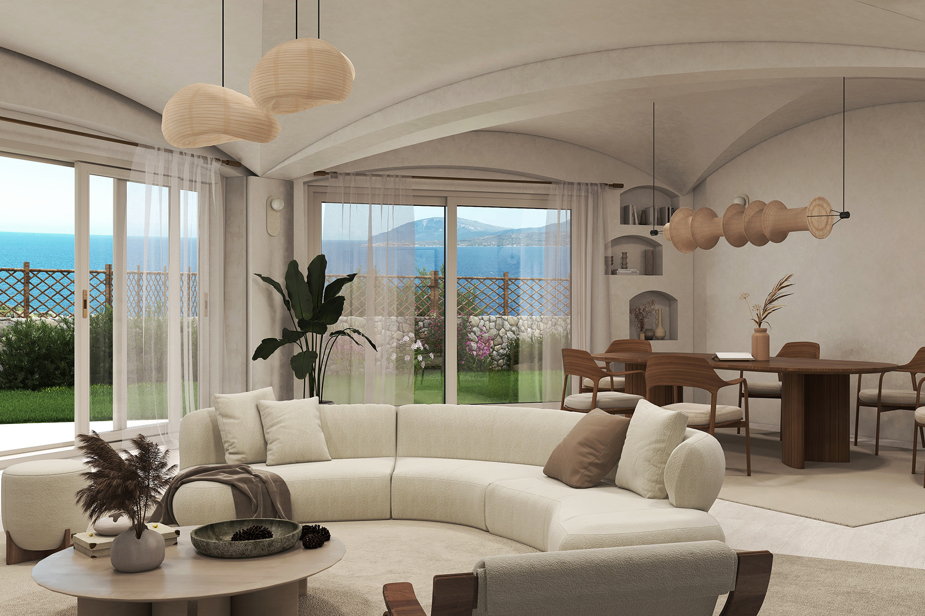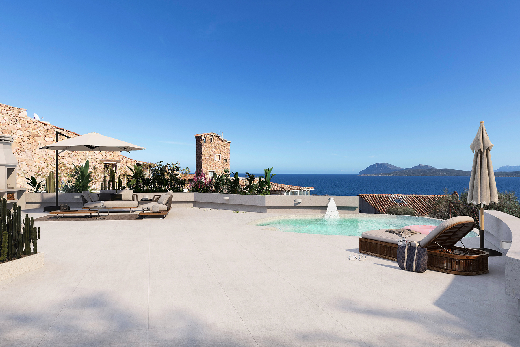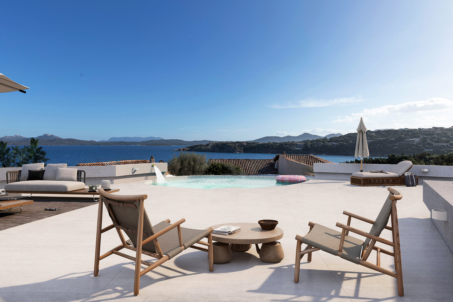 Mediterranean Elegance with Infinity Pool Nestled in the stunning landscapes of Sardinia, Villa Volpe boasts an exquisite infinity pool on a spacious terrace overlooking the serene bay. The villa’s interiors are adorned with earthy Mediterranean tones, reflecting the natural beauty of the surrounding environment. High vaulted ceilings enhance the sense of space and light, creating an airy and inviting atmosphere. Thoughtfully designed to blend luxury with comfort, this villa offers a perfect retreat for those seeking tranquility and elegance amidst the breathtaking Sardinian coastline.